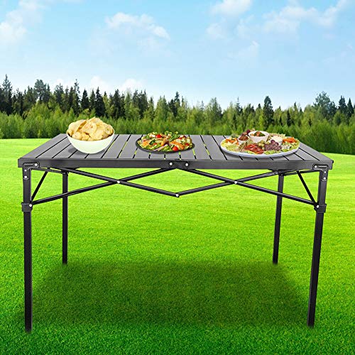 GoTEAM! Portable Heavy Duty Aluminum Roll-Top Table, Camping/Tailgating/Beach Instant Table with Carry Bag (Large)