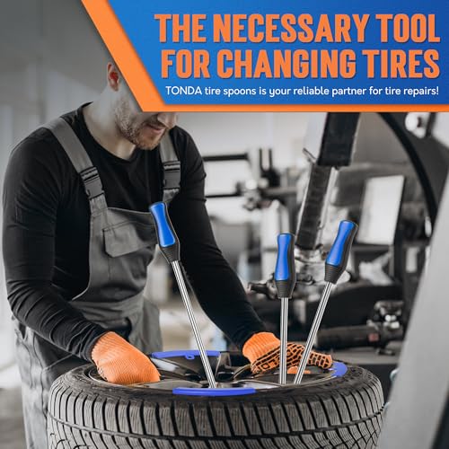 TONDA Tire Spoons, Tire Changing Kit for Motorcycle Dirt Bike Lawn Mower Tractor, Tire Removal Tool Set with Rim Protectors, Valve Tool, Valve Cores, Valve Caps, Valve Stems, Storage Bag