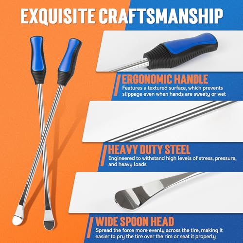 Extra Leverage with 14.5″ Tire Spoons: Designed for efficiency, the extended 14.5-inch spoons provide greater leverage and reach for effortless tire changes. Non-slip PVC handles ensure a firm, comfortable grip during operation