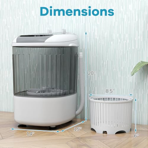 Easily Control Your Cleaning: Featuring a detachable spin cycle basket and safety cover, this washing machine is simple to switche from washing to drying with just the turn of a knob. The dual knobs offer a 15-minute wash timer and a 6-minute spin timer for efficient laundry cycles.